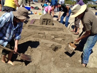 Because of the connection that The Coastal Creatives has with VineArts...and because of I was asked to come over on one of my art ministry trips to connect with the Coastal Creatives (which led to the invitation of some of the VineArts ministers to join in with me on the trip)....This was a unique opportunity for artists from VineArts (at Vineyard Boise church) led by Jessie Nilo to join in with artists from Coastal Creatives (at the Coast Vineyard chuch) led by Gaylene Golden to participate (unofficially) in the sandcastle making today.